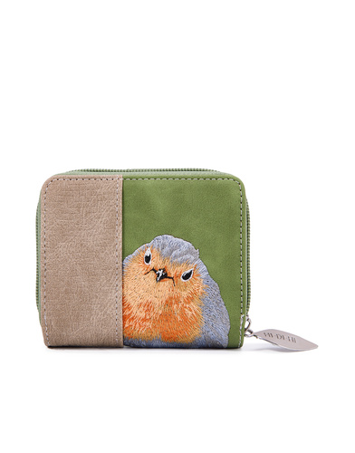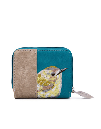 Compacte portemonnee met speels vogelborduursel